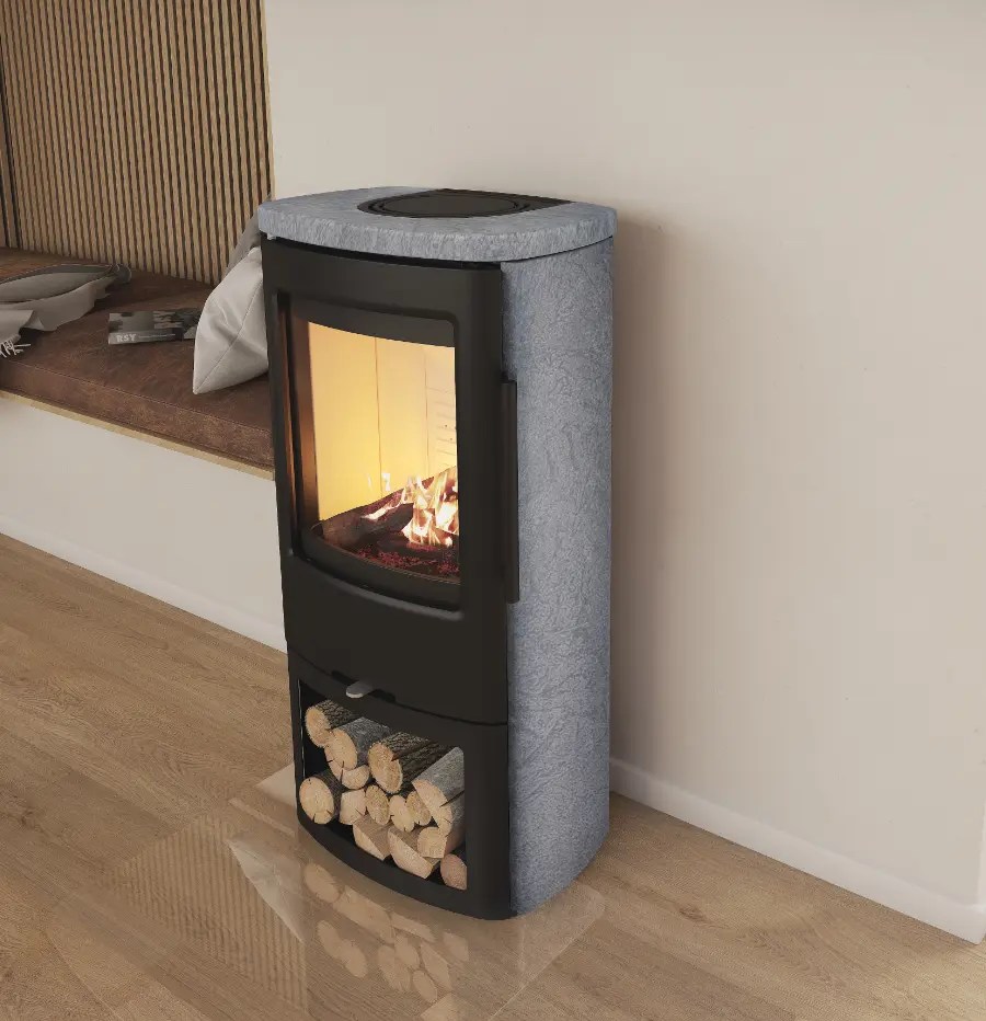 Die elegante und ruhige graue Oberfläche von TermaStone verleiht dem Ofen nicht nur ein luxuriöses und natürliches Aussehen. Der speziell entwickelte Betonstein sorgt für eine optimale Wärmespeicherung, sodass der Ofen die Wärme lange nach Erlöschen des Feuers hält. Die Wärmespeicherung gewährleistet eine gleichmäßige und angenehme Wärmeverteilung, die für eine konstantere und behaglichere Temperatur in Ihrem Zuhause sorgt.
